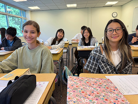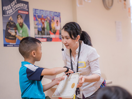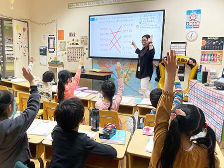 日々の授業の半分は日本語で行い、聞く・話す・読む・書く力をバランスよく育成。日本の文化や考え方に触れることで、異文化への理解と尊重の心、豊かな感受性を育むと共に、日本語で考え、表現し、問題を解決する経験を通して、思考力や認知的スキルの向上を目指します。算数と理科は日本語教員が日本語で指導し、英語と社会は英語担当の先生が教える2人担任制を採用。2人担任制で、子どもたちはより安心でき、学習面のサポートも受けやすくなります。また、高学年の児童が低学年のクラスを訪れる縦割り活動の時間は、子どもたちの楽しみな時間となっています。