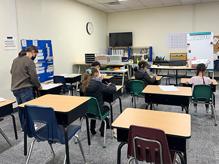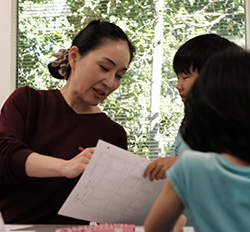 ▲ 「間違えても大丈夫」と日々声がけ。まずは学校の算数クラスで誰にも負けない計算力を身に付けることを目標にします。