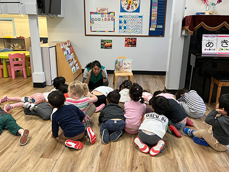 子どもが日本語に親めるよう、楽しんで学べる独自の教材でひらがなを指導。さらに音楽リトミック、体育、アートなど、年齢に応じた特別クラス、そして節分やひな祭りなど行事も多くあります。
