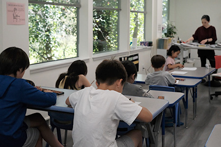 ▲ 教室の様子。週1回約1時間、忙しい現代っ子たちが、できるだけ短時間でしっかり学べるよう、濃密なカリキュラムを組んでいます。